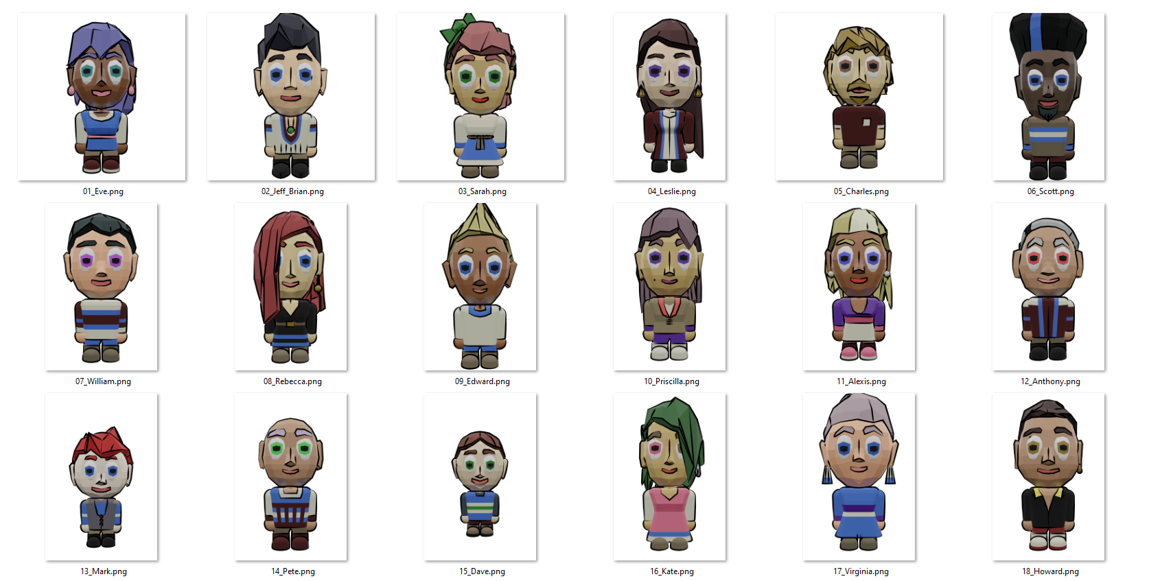 I knew it had to fit the low poly style, but also wanted it to be a more basic style that I could easily repeat for my hundreds of NPCs.