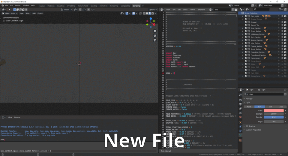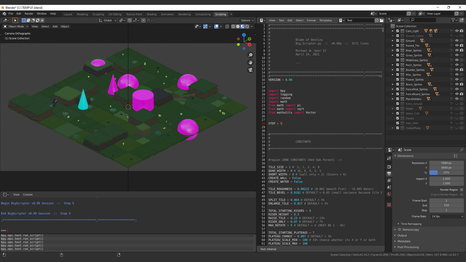 This allowed me to let AHK take over the keyboard and mouse, run the Blender Python, and create the gameworld while I was away from the computer!