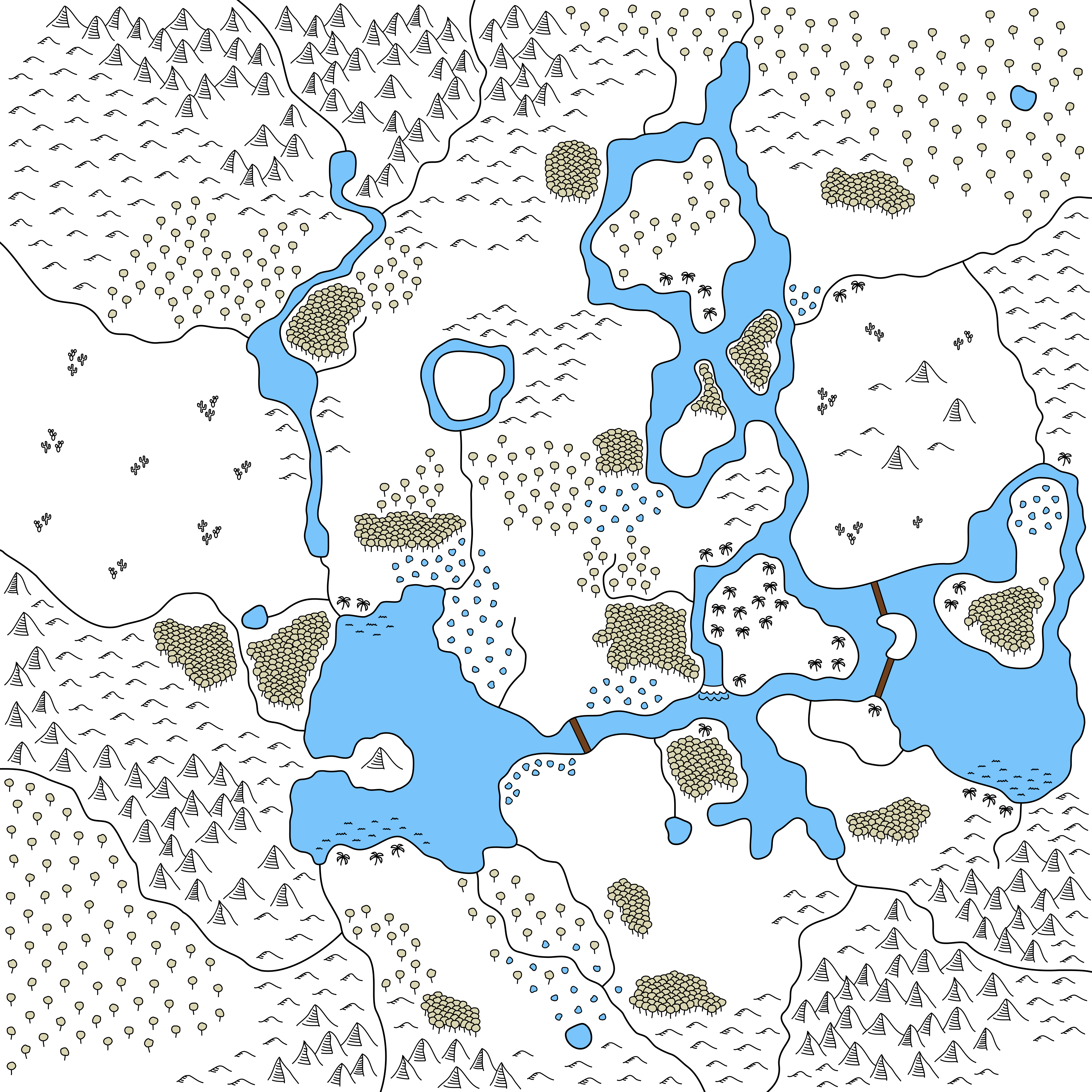 I also used inkscape to create the world map, region maps, and dungeon maps (see