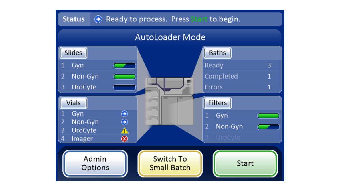 The ThinPrep 5000 maximizes laboratory efficiency with fully automated, hands-free technology. Increase efficiency and take advantage of 8 hours of walkaway freedom. With continuous access, along with chain-of-custody verification, laser etching and automatic vial uncapping, the ThinPrep 5000 Autoloader brings a new dimension of productivity to your cytology workflow.