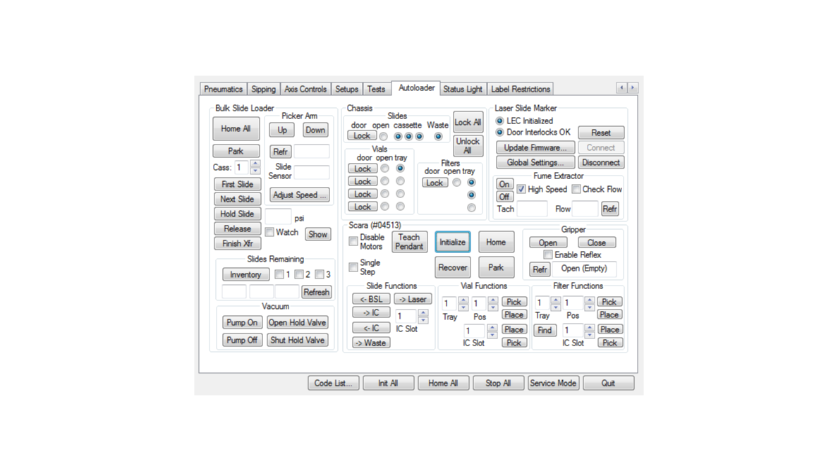 I was tasked to lead the efforts in the new software update, which included major features being added to the GUI, service application, and machine controls, as well as minor updates and preexisting bug fixes.